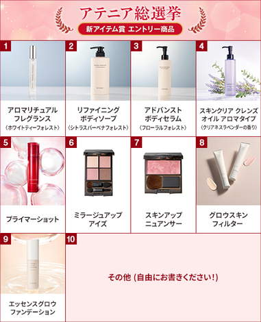 エントリー商品9つ以外に「この商品いいね!」と思うアイテムがある方は、「10.その他」を選び、コメントでアイテム名を教えてくださいね。