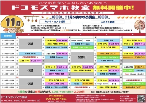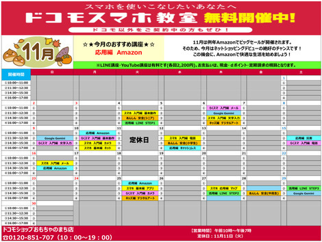 【とちぎ店・おもちゃのまち店スマホ教室】11月スケジュール🍁