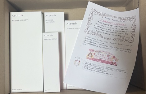 本日アテニアさんからプレゼントとラベルが貼られた箱が届き、開けてみてびっくりしました〜👍️特別賞が当選してたんですね私!!ほんとにありがとうございます
