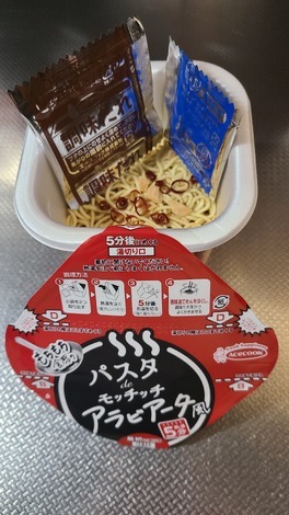 ■今日のインスタント麺について教えてください!今日は「エースコックパスタdeモッチッチアラビアータ風」を食べました。