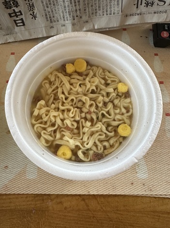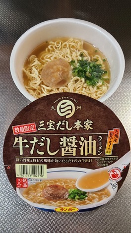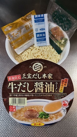 ■今日のインスタント麺について教えてください!今日は、サンポー「三宝だし本家牛だし醤油ラーメン」を食べました。牛だしの利いた醤油ラーメンに牛脂の香り漂