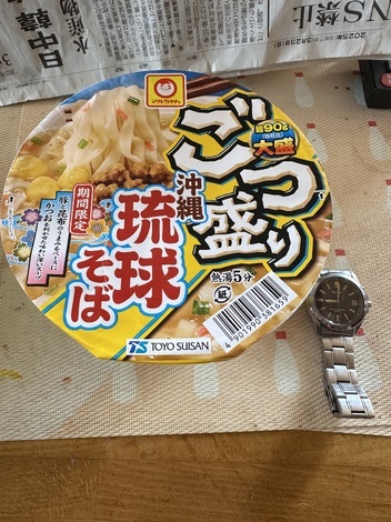 ■今日のインスタント麺について教えてください!東洋水産マルちゃんごつ盛り期間限定沖縄琉球そばランチ時間に食べました。ソバというよりウドンでした😅