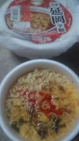 ■今日のインスタント麺について教えてください!ベストプライスの宮崎延岡辛麵。室温30℃の部屋で扇風機の風に当たりながら食べる熱いラーメンはうまい。遅い