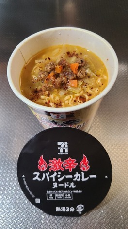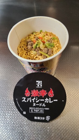 ■今日のインスタント麺について教えてください!今日は、「セブンプレミアム激辛スパイシーカレーヌードル」を食べました。見た目はあまり辛そうには見えません