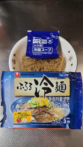 ■今日のインスタント麺について教えてください!今日は、農心「ふるる冷麺」を食べました。ツルツル、モチモチのしっかりした麺に、甘酸っぱいスッキリした味わ