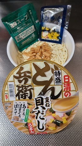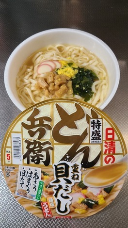 ■今日のインスタント麺について教えてください!今日は、「日清のどん兵衛特盛重ね貝だし鶏塩うどん」を食べました。鶏塩だしの利いたつゆに貝だしのコク深い旨
