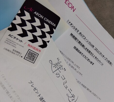 コミュニティオープン記念「映画館で観る楽しさを語ろう♪キャンペーン」に当選してイオンシネマ無料鑑賞券をいただきました✨ありがとうございます!アバターの