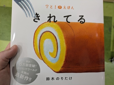 鈴木のりたけさんの『きれてる』を買いました✨✨✨絵本を開くと、美味しそうなロールケーキが登場して、「きれてる!」というセリフに続き、ページをめくると、