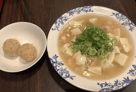 家族3人で行ってきました。私は必ず頼むごま団子と、遅い時間だったのでヘルシー狙いで葱だく!海老と豆腐の旨塩煮込みを注文。海老好きなので、エビが予想より