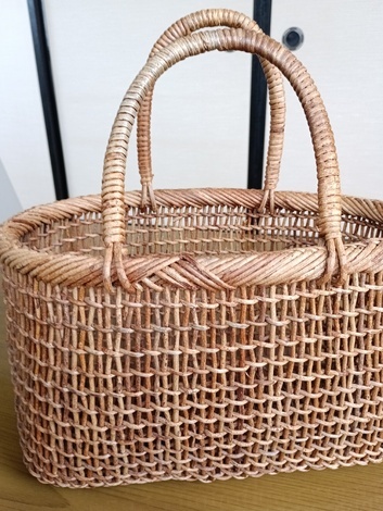 あけびのつるで編んだかごバックです今はあけびのつるもあまりとれないかた大変でしょうね。