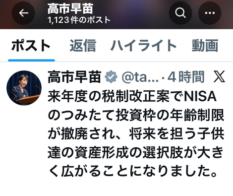 高市さん Xで投稿してました働いて働いて…御身お大事!