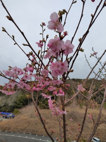 登ってきたら 花畑だよ。河津桜はまだ 早いかな?