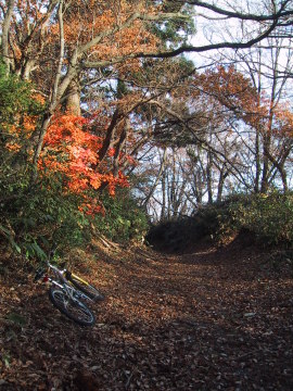 冷たい風が頬を撫でる。。上りになると額に汗が。。タイヤが転がる度…落ち葉がサクサクと音を奏でる。。もうすっかり紅葉が過ぎた山岳路。。その中でひとつ忘れ