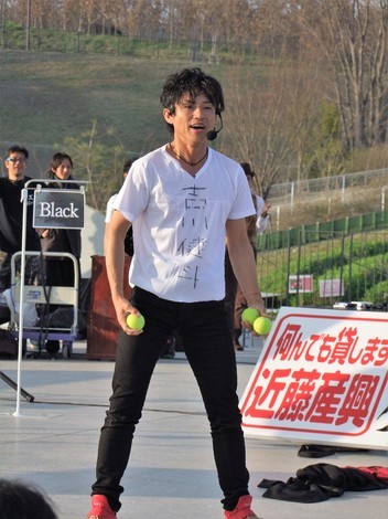 そうして上がってもらった方からボールを5個投げてもらい、ジャグリング。途中で2個落としてしまうも拾ってもらい再開。