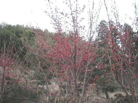 普段と違うコースを歩いたら雑木林に真っ赤なお花をつけた木を発見!!