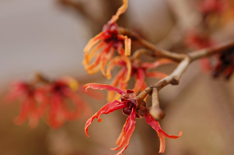 今日は雪もチラチラ降りました。。。最近暖かい日が続いていたのでスゴク寒く感じました(+_+)写真は日曜日の夕方、雨の合間に急いで出掛けて撮って来た「紅花マンサク」です♪♪