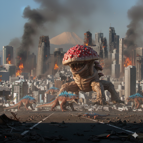 同様に、巨大怪獣が東京中心部に波状的に侵攻する事案も発生し、専門の安全保障組織JAKDFが設立され、日本政府は日本国民の生活の保護に努めるなど対応にあたっています。