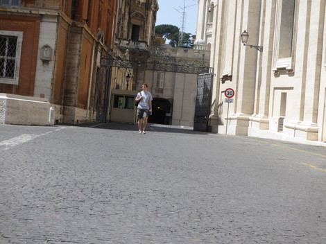 そうして、スイス兵のいる所に行き、手荷物検査を受け、ツアーの開始を、暑い日差しの下で待つ!-