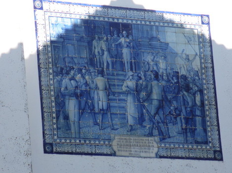 すっかり晴れ渡った空の下、朝靄でわからなかった景色を逆行しながら、坂を上っていきました。途中、Azulejoの大きな壁画が、ひっそりと壁を飾っていました。