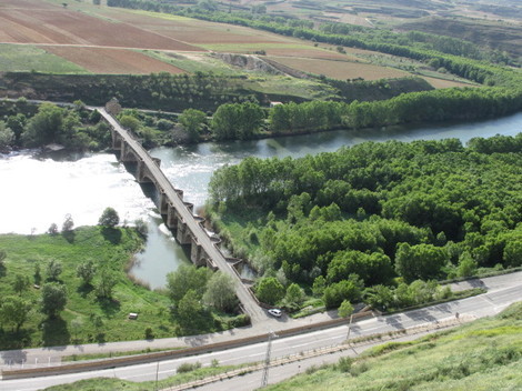 高所から見た村は、この通り。Ebro川の畔の筈なんだが、かなり川は谷底にあり、下りにくそうなので、下が見える場所まで行ってみた。