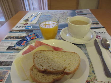 さて、Leonから前日訪れたAstorga(駅)を通過し、単線ばかりの線路を揺られて3時間半、ガリシア地方内陸部のMonforte de Lemosという所に夕方到着。駅と旧市街の間が離れているので、タクシーで宿へ向かった。ちょっとボケーっとしていたら、夕食の時間になったので、レストラン探しに向かう。