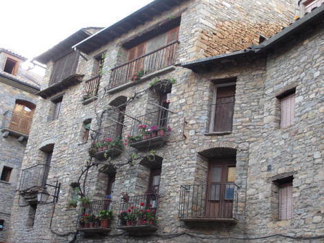 Barbastroで乗換える前、運ちゃんに「Ainsaに行くぞ~!」と、一応アピールしておいたら、乗換え時間5分なので、運ちゃんは「Ainsa行き、こちら4名」と連絡を入れていたので、ちょっとホッとした。乗換えてから、ひたすらしたすら、アラゴン地方のピレネー山麓沿いの、けっこう狭い山道を1時間、ガンガン飛ばして到着したのが、Ainsaという、11世紀アラゴン王国の首都であった「古都」であった。