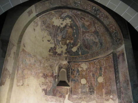 ムムム、写真にするとわかりづらいのですが、初期ロマネスクのモザイクが、このように残っています。