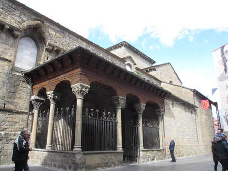 実はこっちが正面になります。真正面が、初期ロマネスクデザインの入り口です。建物の上部は、見事なアラゴン様式です。