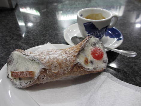 デザートが欲しくなったので、ショーケースで「イベリア半島にはないもの」を選びました。リコッタチーズをパイ地でくるんだデザートで、リコッタチーズとはいえ、かなりあっさり目。せっかくなので、コーヒーも最後に注文して、やっと落ち着きました。
