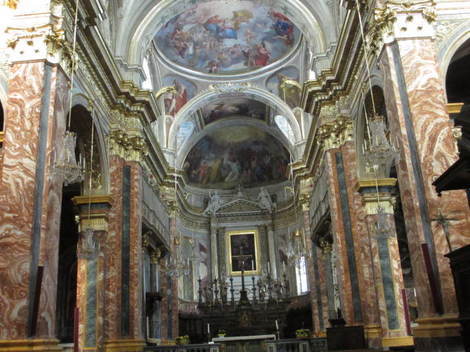 イタリアでは教会は滅多に入場料を取らないのでいいのですが、ここは中世の時代、Mondovi侯国(Mondovi伯爵量)だったそうで、現在のこの大きさの町に対し、Catedralの内陣は豪華で目を見張りました。