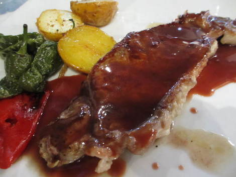 Crepo de espparagosという説明だったので、注文をしたら、Aragonとは思えない、まるでバスク料理のような、立体感と、盛りかげんで運ばれてきた。ミルフィーユもどきなので、ぱりぱりと軽く割れたモノを、ひっかき集めて食べましたが、なかなかのお味でした。ソースはビネガー風味で、すっぱみがよかったです。