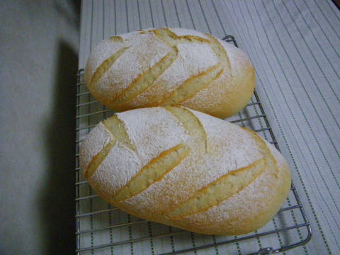 > さて、写真はさっき焼いた白神こだま酵母のソフトフランスです。