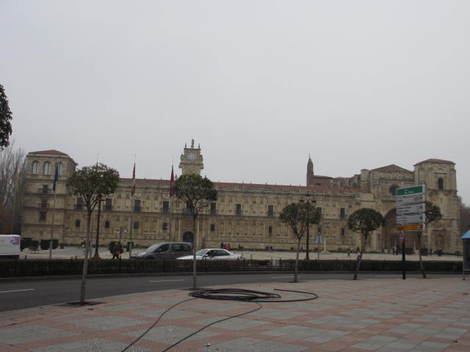 珍しくちょっと紅葉している木があるが、黄葉まっさかりの川沿いを歩き、前回は行かなかった、Parador "Hostal San Marcos" de Leonへ向かう。ここはParadorなのだが、修道院の一部なので、宿泊者でなくても、見学可能である。