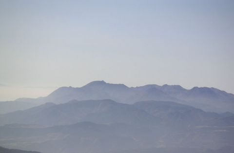 > 由布岳の頂上からは360度のパノラマビュー、これは九重連山の山並みはるかです!