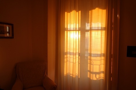 カーテン越しの朝日も美しい。