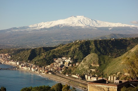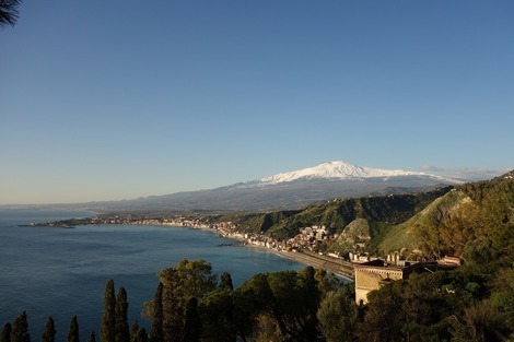 少し先まで歩いて行くと、うわ~ エトナ山が!