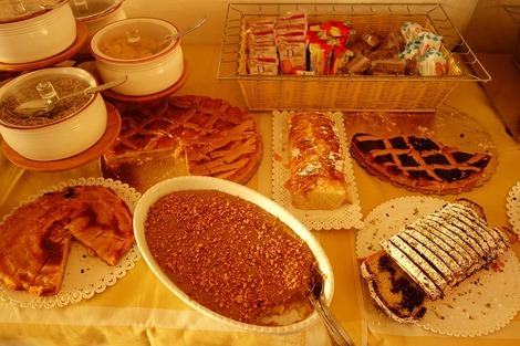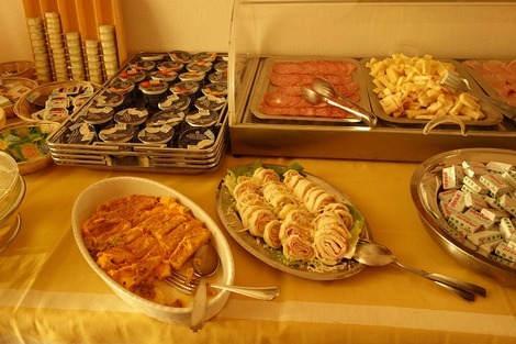 その壁側(この写真を撮っている私の背後)に朝食のあれこれが並べられています。