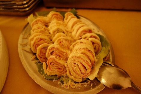 ハムを巻いておろしチーズをかけてあります。