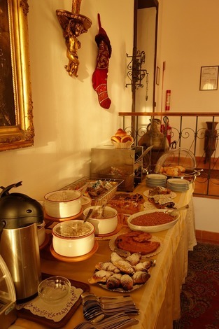 私たちの部屋は、朝食のサロンから階段を1つ上の階に上り、