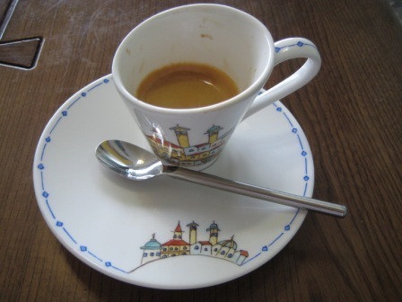 カッフェ用は少し中心をずらしてカップを置くように作られていて、広い方にビスコッティなどをちょこっと添えるようにく作られています。