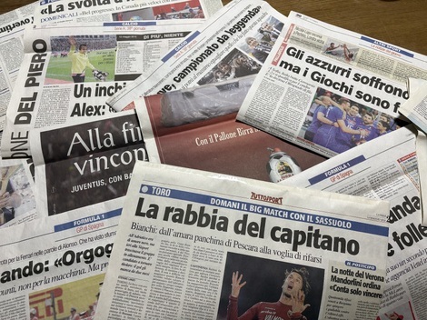 ’12年5月にユーヴェの試合(その前節で優勝を決め、このシーズンでアレが引退するのでホーム最後の試合)を観に行ったときの翌日、トップにアレの載っている新聞をいくつも買って帰ったのをずっと持っていました。