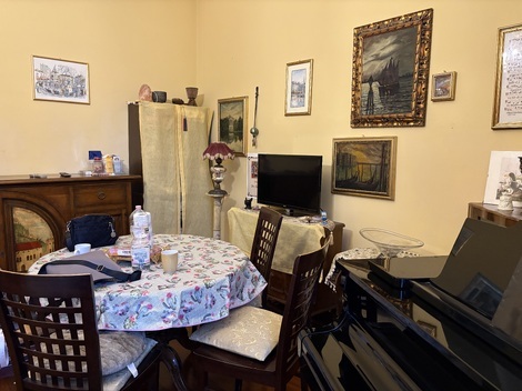 ご覧のように、ピアノや、絵のほかに棚の中には本や雑貨なども入っていて、私の推測では、これらを整理して部屋を整えれば予約サイトを通して「バス・トイレ、キッチン共用の貸し部屋」として登録できるのに、このままにしておきたいので(或いは片付けや処分が大変なので)、知人を通して安く貸しているのでしょう。