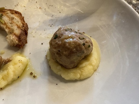 このマッシュポテトがクリーミーでコクがあってポルペッテと絶妙なハーモニー。