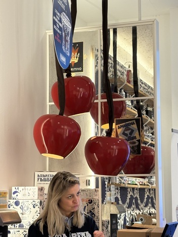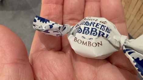 この店、ブラックチェリーのシロップ、アマレーナが有名なのだそうで、それをフィリングしたキャンディも有名なのだとか。