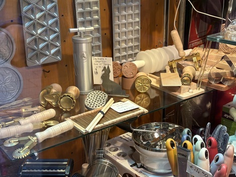 パスタの型など、いろんな調理器具を売っている店を覘き、