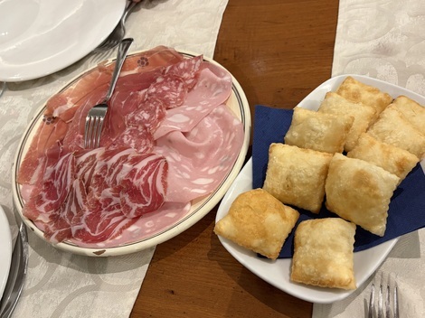 ハム・サラミ盛り合わせと熱々のクレシェンティーネ。