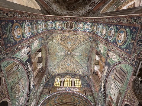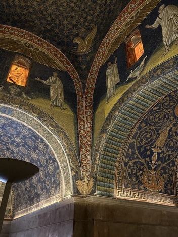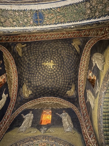 ガッラ・プラチーディアは、5世紀にテオドシウス1世の娘であるガッラ・プラチ―ディアにより、キリストの聖遺物である十字架を納めたサンタ・クローチェ聖堂の付属建築物として建てられたそうです。