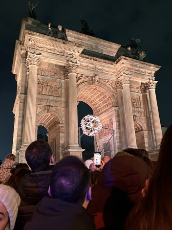 ミラノ中央駅前の広場にもオリンピックの映像が見られる特設の場所や記念撮影できる場所がありました。