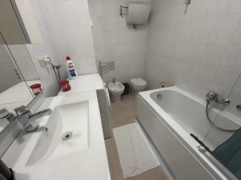 イタリア人は、シャワーカーテンをあまり好まないようで、何もないことも少なくないし、アクリルとか硝子板が立ててある場合も結構あります。
