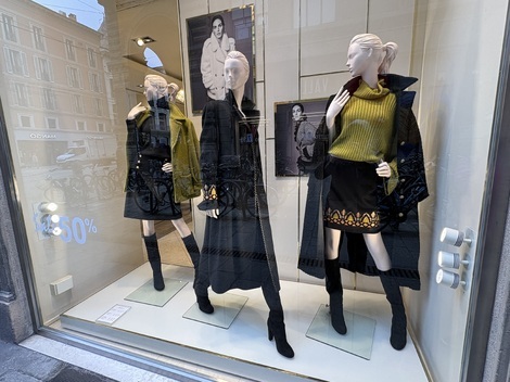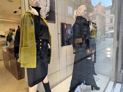 今年の流行色ですね黄緑からピスタチオ色、イタリア人の好むファッションは老いも若きもほぼ同じでハイブランドと同じようなデザインの物を自分のお財布に合わせた店で揃えるという分かり易いものです日本の様な多様性はあまり無いですよね、ミランは都会なので違うかもしれないですが行ってないので分かりません